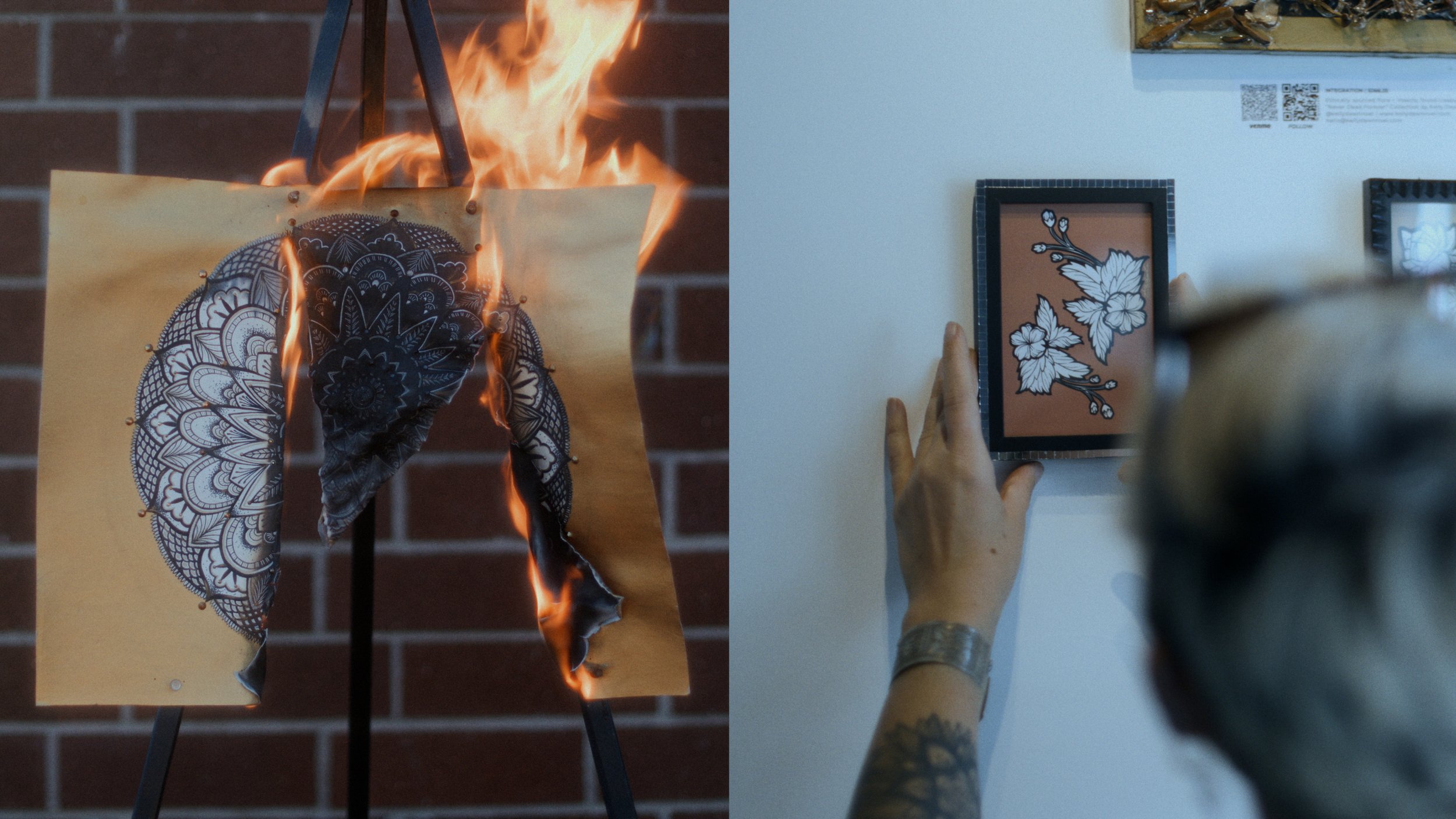 Born and raised in San Diego, her creative practice has evolved across mediums including sculpture, mixed media, installation, film, writing, and graphic work. Her pieces often incorporate unconventional materials—mirrors, bones, ink, resin, found objects, and fragments of language—assembled into intimate visual confrontations with grief, trauma, identity, and transformation.